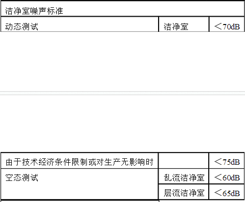 (6)非單向流潔凈室(區(qū))的噪聲級(空態(tài))不應(yīng)大于60dB(A),單向流和混合流潔凈室(區(qū))的噪聲級(空態(tài))不應(yīng)大于65dB(A)。