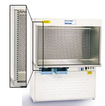 高速回風插槽,可以**大限度地減少傳統(tǒng)超凈工作臺建設共同創(chuàng)建反粒子污染。空氣被吸入沿著工件表面的前邊緣和沿在1000 FPM側壁確保沒有未經(jīng)過濾的空氣進入工作區(qū)位于該高速槽。這些槽從根本上減少顆粒數(shù)從通過引入工件或操作者的手進入工作流創(chuàng)建,因為他們在工作空間的所有前緣回收空氣反沖洗,并且再循環(huán)空氣通過HEPA過濾器,以減少顆粒數(shù)。插槽通過減少污濁空氣擴散進入過濾器進氣延長濾芯使用壽命。